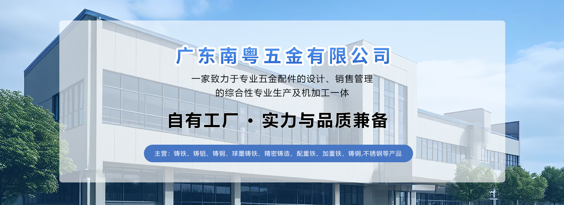 廣東南粵五金有限公司成立于1996年位于富饒的珠江三角洲、東莞市歷史名鎮(zhèn)--清溪鎮(zhèn)。是一家致力于專業(yè)五金配件的設(shè)計(jì)、銷售管理的綜合性專業(yè)生產(chǎn)及機(jī)加工一體: 鑄鐵、鑄鋁、鑄銅、球墨...